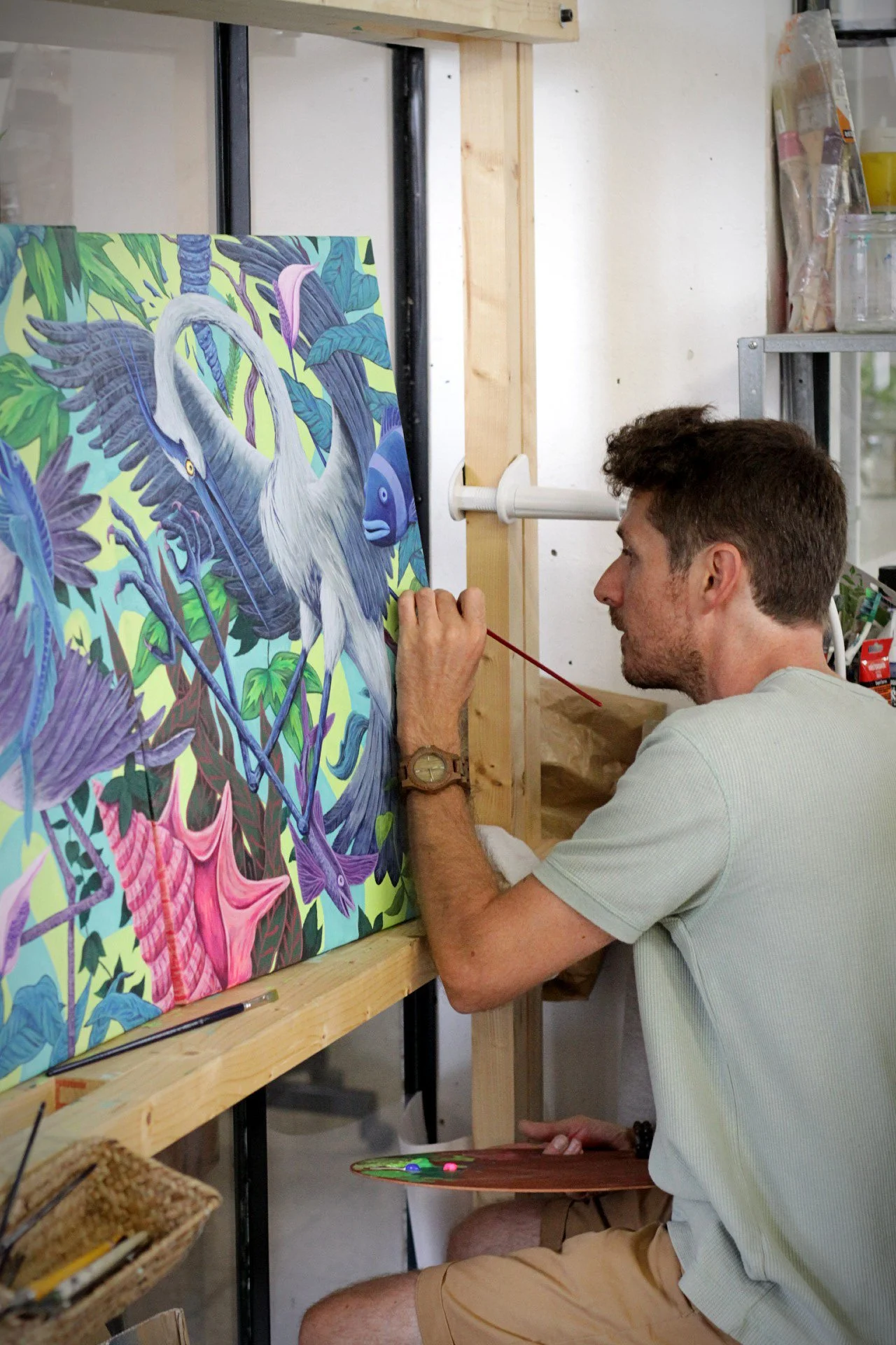 A través de sus pinturas coloridas, atrevidas y complejas, Ladislas desarrolla un "Imaginario" visual y un universo inspirado en la naturaleza que le gusta llamar "Ecosurrealismo".