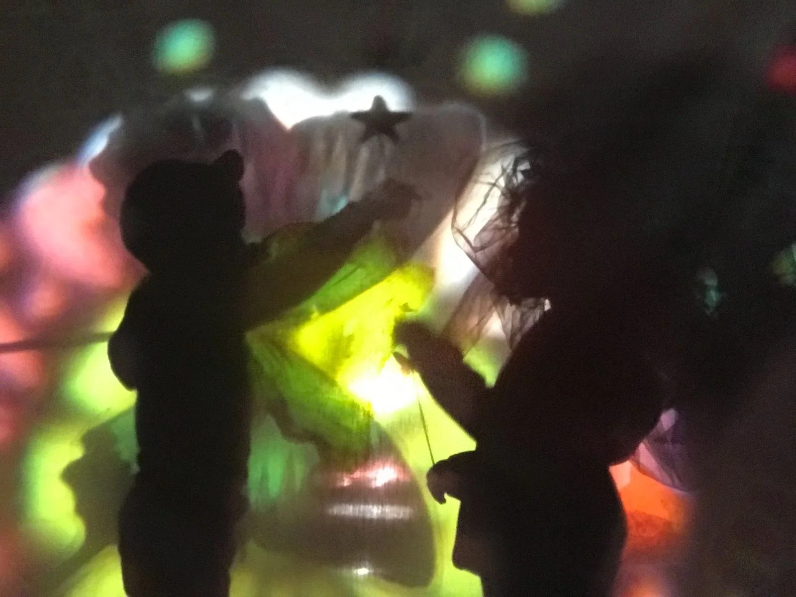 La propia exposición da pie a un taller que genera un laboratorio de imágenes sonoras y un collage en movimiento con la participación del cuerpo a través de las luces, las sombras y el sonido.